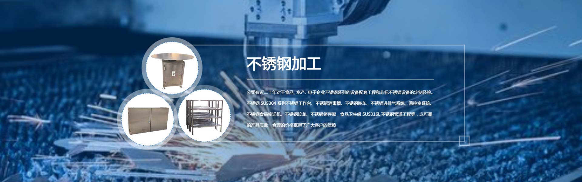 我公司有近二十年對于食品、水產(chǎn)、電子企業(yè)不銹鋼系列的設(shè)備配套工程和非標(biāo)不銹鋼設(shè)備的定制經(jīng)驗。不銹鋼SUS304系列不銹鋼工作臺、不銹鋼消毒槽、不銹鋼拖車、不銹鋼進排氣系統(tǒng)、溫控室系統(tǒng)、不銹鋼食品輸送機、不銹鋼絞龍、不銹鋼儲存罐,食品衛(wèi)生級SUS316L不銹鋼管道工程等,以可靠的產(chǎn)品質(zhì)量,合理的價格贏得了廣大客戶的信賴。